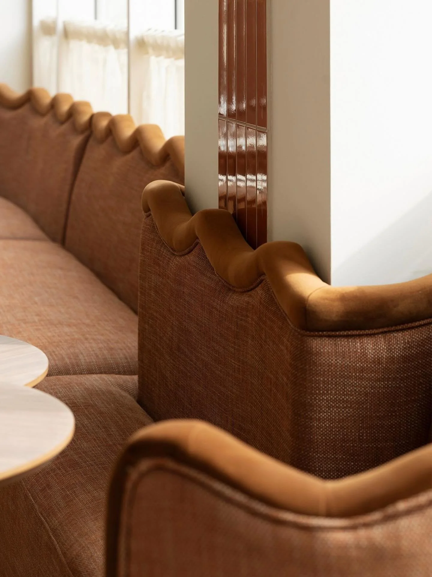 To complete the design story, all carpets, decorative lighting and upholstered furniture are bespoke items created or curated by our interior designers in HK especially for Bernacchi Chambers. The contrast of lines between the carpet design and the curved sofa enhances further the spatial experience.
